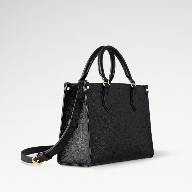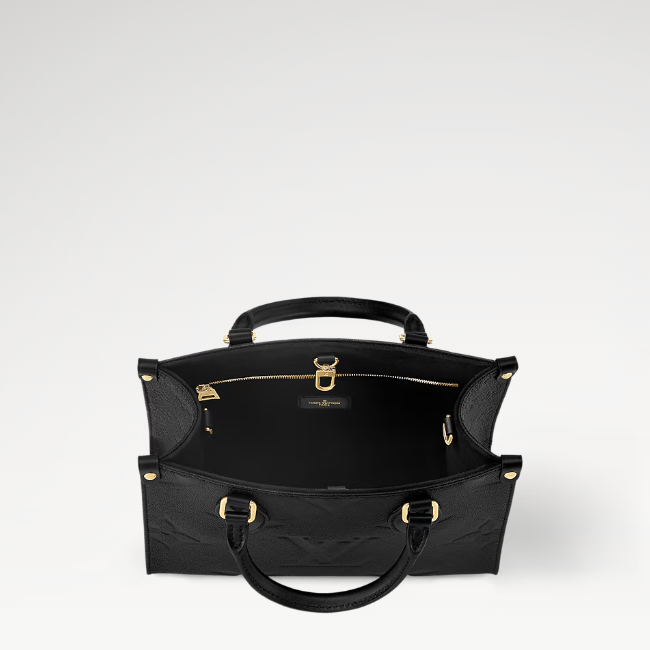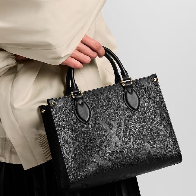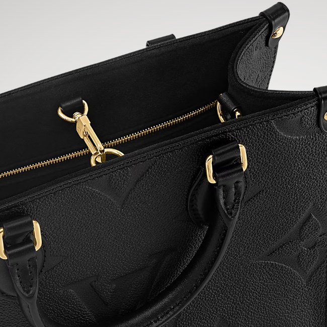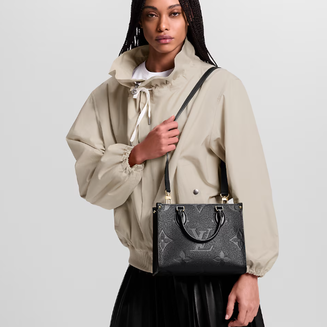 1968년에 선보인 루이 비통의 유명한 삭 플라에서 영감을 받은 온더고 PM(OnTheGo PM) 토트. 자이언트 모노그램 패턴을 은은하게 양각으로 새긴 모노그램 앙프렝뜨 가죽 소재. 미니 태블릿과 같은 필수품을 수납하기 좋은 오리지널 온더고의 작은 버전. 연접식 상단 핸들과 조절 및 탈착 가능한 스트랩을 활용해 다양하게 연출할 수 있는 아이템.
