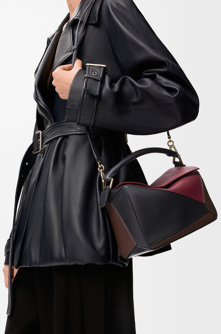 퍼즐은 독특한 기하학적 라인과 큐브 형태가 특징입니다. 스몰 버전은 요제프 알베르스(Josef Albers)의 '정사각형에 바치는 경의(Homage to the Square)' 시리즈에서 영감을 받아 인타르시오 스퀘어 모티브를 장식한 나파 카프스킨 소재로 제작되었습니다. 이 백은 로에베 x Josef & Anni Albers(요제프 & 안니 알베르스) 컬렉션의 일부입니다.