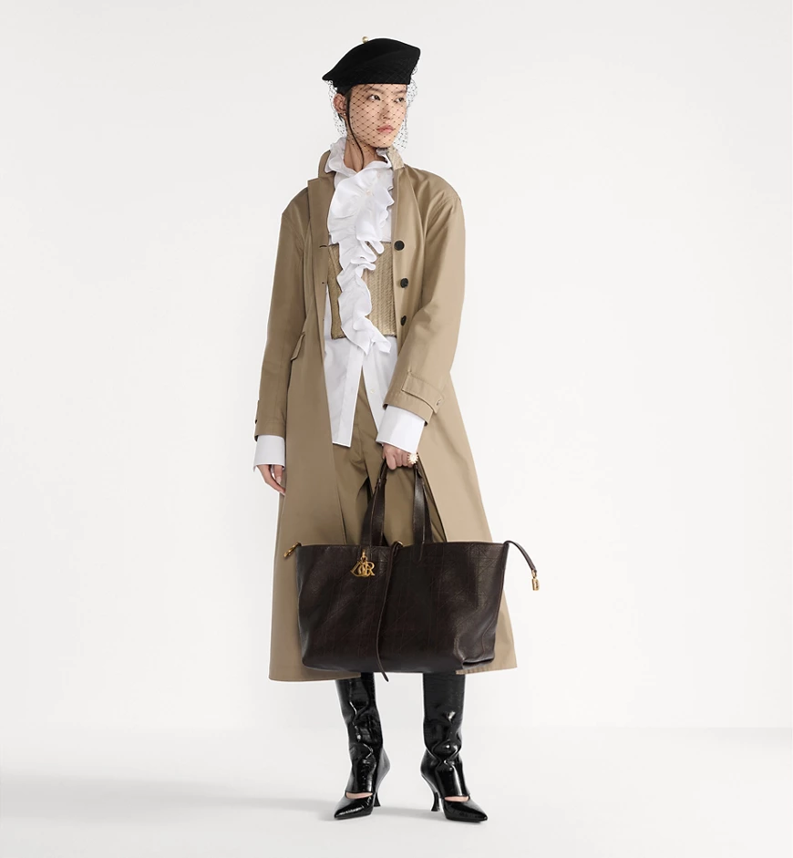 2024-2025 가을-겨울 패션쇼에서 선보인 캐주얼하고 실용적인 디자인의 Dior Toujours 백입니다. 디올 하우스의 아이코닉한 모티브를 새롭게 해석한 초콜릿 브라운 컬러의 플랫 매크로까나쥬 유광 그레인 송아지 가죽 소재로 제작되었으며, 데일리 소지품을 깔끔하게 보관할 수 있는 넉넉한 내부 수납공간 및 매치되는 디자인의 파우치가 특징입니다. 슬림한 가죽 스트랩 클로저로 소지품을 안전하게 보관할 수 있으며, CD Lock 잠금장치의 D를 돌려 실루엣 옆면을 조절할 수 있습니다. 작은 노치를 통해 길이를 조절할 수 있는 가죽 탑 핸들 덕분에 핸드백이나 숄더백으로 활용하기 좋은라지 백입니다.