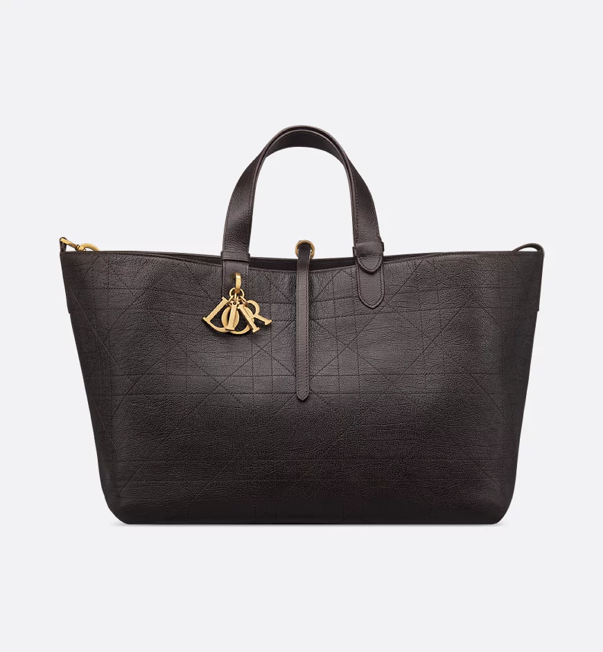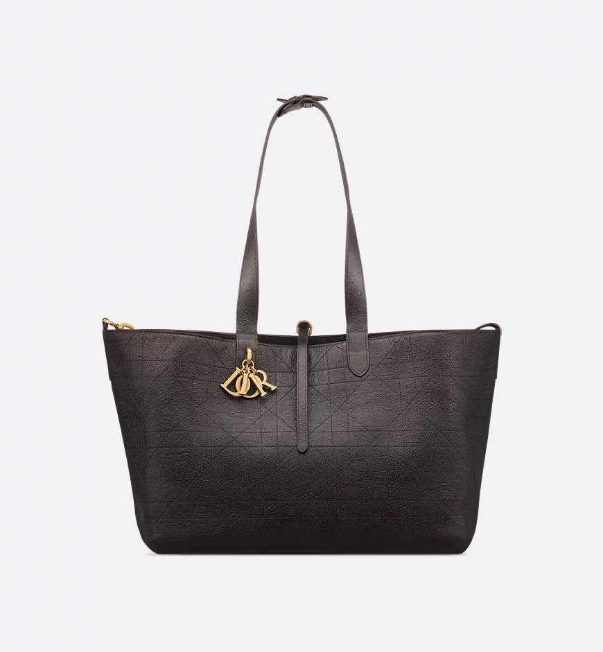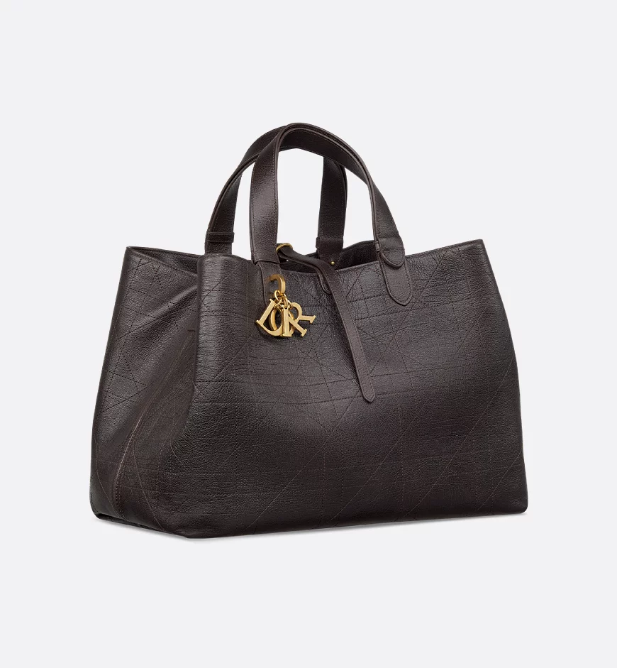 디올 Toujours 라지 백 초콜릿 브라운 플랫 매크로까나쥬 유광 그레인 송아지 가죽 M2820CUVD_M61M