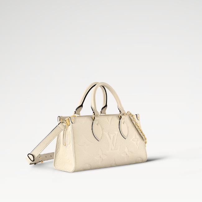 아름다운 비율의 이스트 웨스트 실루엣으로 새롭게 선보이는 온더고 이스트 웨스트(OnTheGo East West) 토트 백. 톤 배색을 이루는 자이언트 모노그램 모티프를 양각으로 새겨넣은 모노그램 앙프렝뜨 가죽 소재. 데일리 필수품을 휴대할 수 있도록 효율적인 내부 수납공간을 갖춘 컴팩트한 디자인. 두 개의 연접식 상단 핸들과 탈착 가능한 체인 및 가죽 소재의 스트랩을 사용하여 다양한 스타일로 연출할 수 있는 아이템.