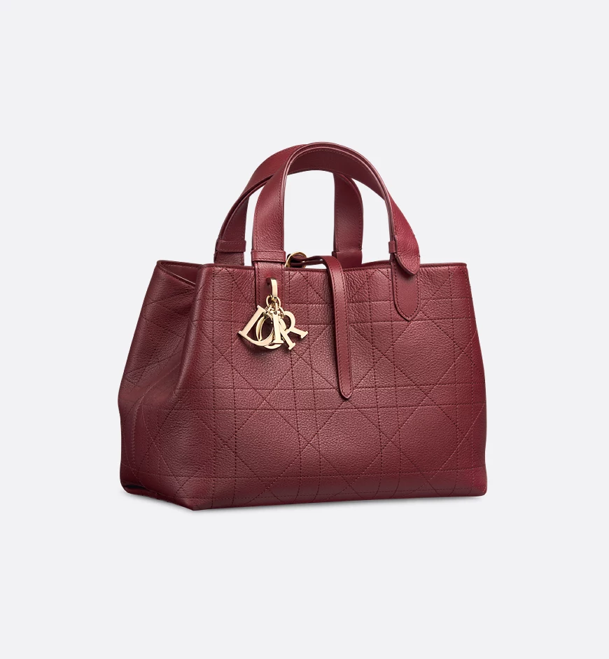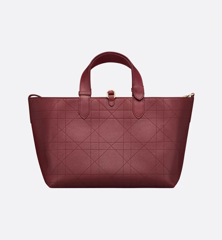 캐주얼하고 실용적인 디자인의 Dior Toujours 백입니다. 디올 하우스의 아이코닉한 모티브를 새롭게 해석한 버건디컬러의 플랫 매크로까나쥬 송아지 가죽 소재로 제작되었으며, 데일리 소지품을 깔끔하게 보관할 수 있는 넉넉한 내부수납공간 및 매치되는 디자인의 파우치가 특징입니다. 슬림한 가죽 스트랩 클로저로 소지품을 안전하게 보관할 수 있으며, CD Lock 잠금장치의 D를 돌려 실루엣 옆면을 조절할 수 있습니다. 작은 노치를 통해 길이를 조절할 수 있는 가죽 탑 핸들 덕분에 핸드백이나 숄더백으로 활용하기 좋은 미디엄 백입니다.