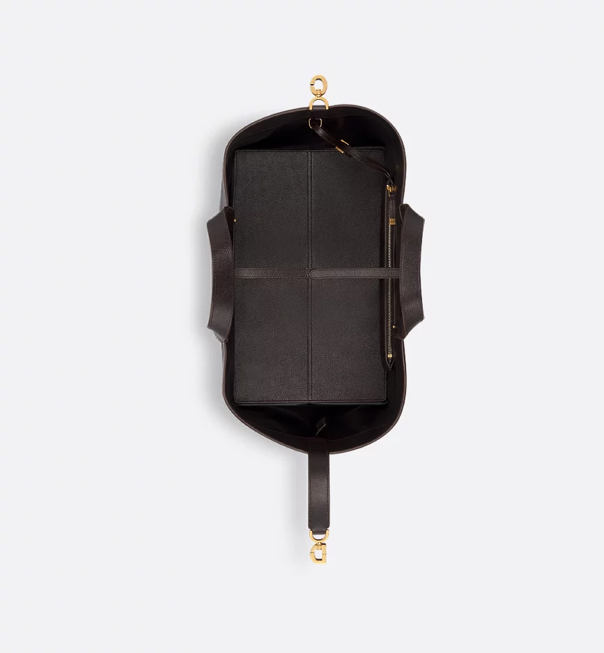 2024-2025 가을-겨울 패션쇼에서 선보인 캐주얼하고 실용적인 디자인의 Dior Toujours 백입니다. 디올 하우스의 아이코닉한 모티브를 새롭게 해석한 초콜릿 브라운 컬러의 플랫 매크로까나쥬 유광 그레인 송아지 가죽 소재로 제작되었으며, 데일리 소지품을 깔끔하게 보관할 수 있는 넉넉한 내부 수납공간 및 매치되는 디자인의 파우치가 특징입니다. 슬림한 가죽 스트랩 클로저로 소지품을 안전하게 보관할 수 있으며, CD Lock 잠금장치의 D를 돌려 실루엣 옆면을 조절할 수 있습니다. 작은 노치를 통해 길이를 조절할 수 있는 가죽 탑 핸들 덕분에 핸드백이나 숄더백으로 활용하기 좋은라지 백입니다.