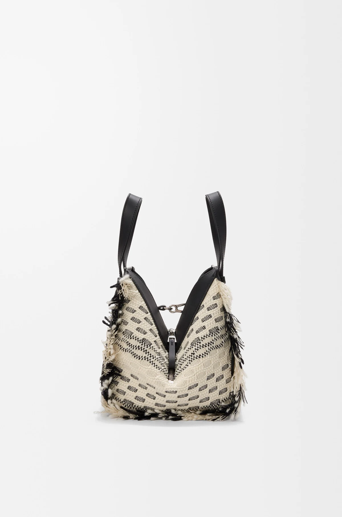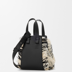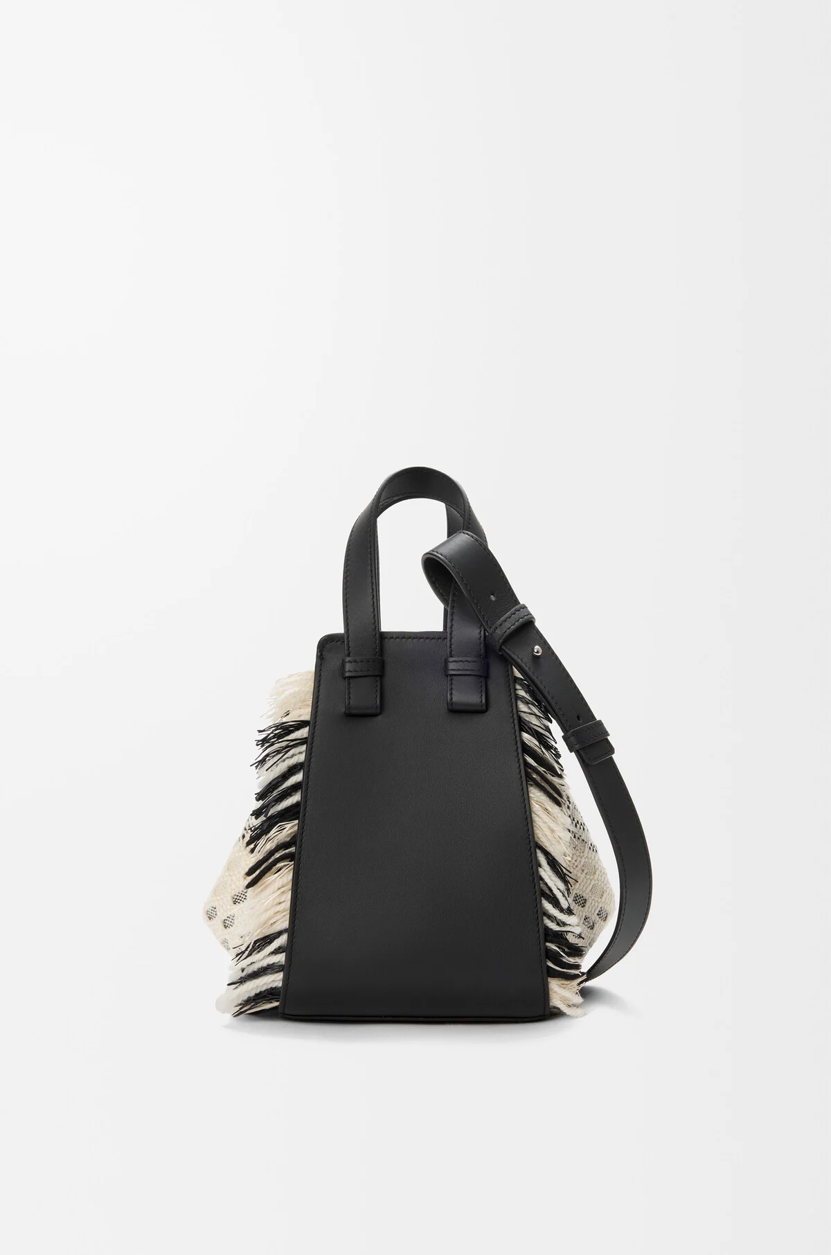 해먹은 유연한 측면을 내부 또는 외부로 접어 독특한 실루엣을 연출할 수 있는 실용적인 디자인의 백입니다. 컴팩트 버전은 안니 알베르스(Anni Albers)의 태피스트리 예술에서 영감을 받은 프린지 디테일과 조화를 이루는 우븐 울 혼방 텍스타일로 제작되었습니다. 이 백은 로에베 x Josef & Anni Albers(요제프 & 안니 알베르스) 컬렉션의 일부입니다.