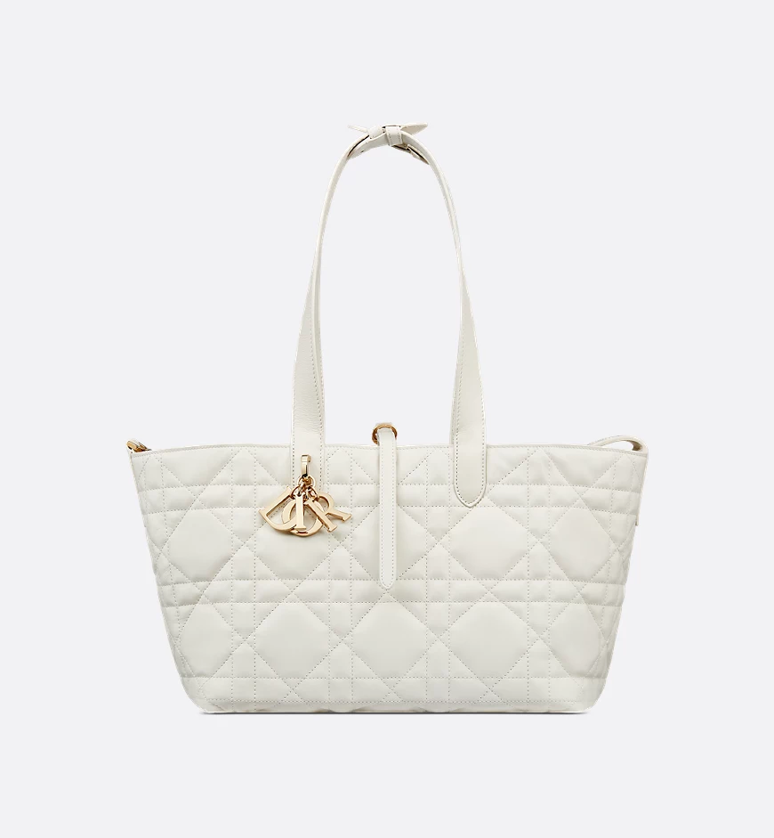 캐주얼하고 실용적인 디자인의 Dior Toujours 백입니다. 매크로까나쥬 스티칭 디테일의 라떼 컬러 송아지 가죽 소재로 제작되었으며, 넉넉한 내부 수납공간 안에 매치되는 디자인의 파우치가 있어 데일리 소지품을 깔끔하게 보관할 수있습니다. 슬림한 가죽 스트랩 클로저로 소지품을 안전하게 보관할 수 있으며, CD Lock 잠금장치의 D를 돌려 실루엣옆면을 조절할 수 있습니다. 작은 노치를 통해 길이를 조절할 수 있는 가죽 탑 핸들 덕분에 핸드백이나 숄더백으로 할용하기 좋은 미디엄 백입니다.