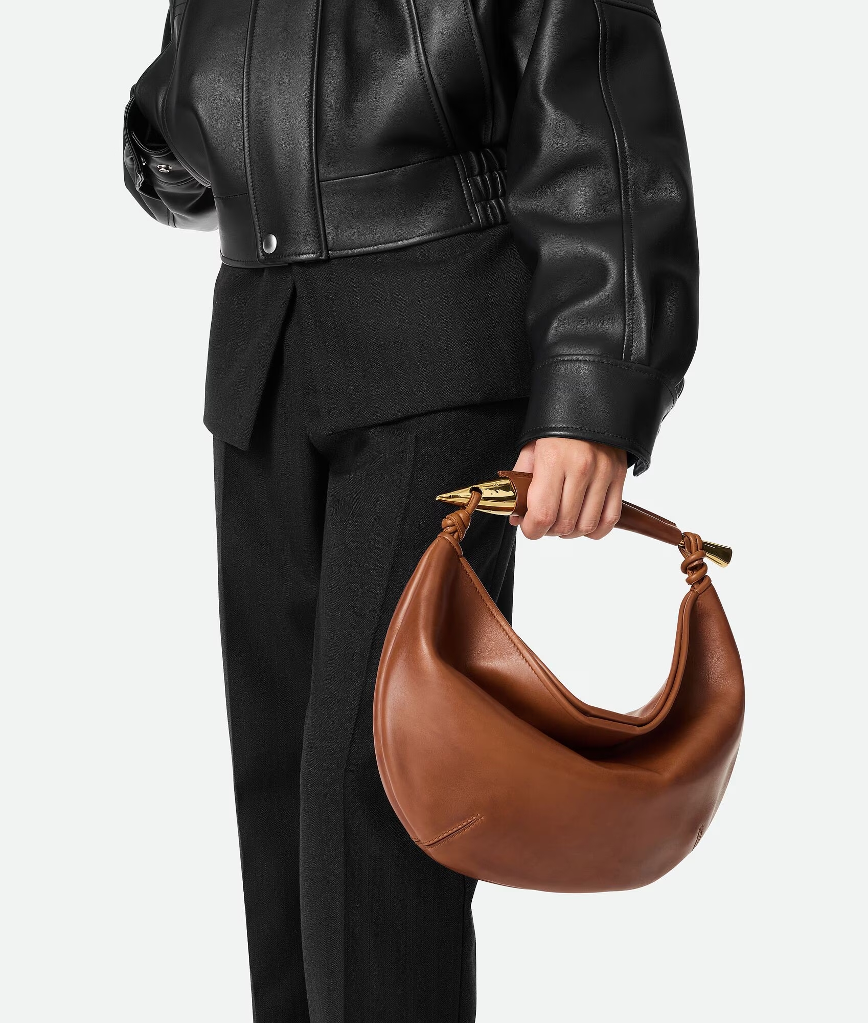 메탈릭 탑 핸들을 갖춘 워시드 브리스톨 송아지가죽 소재의 백