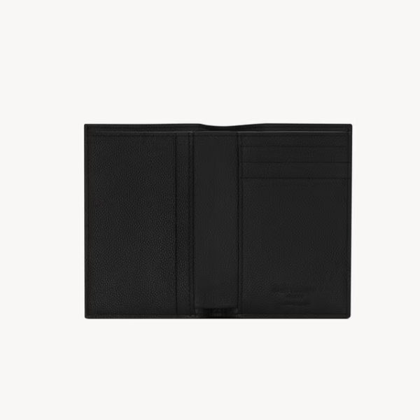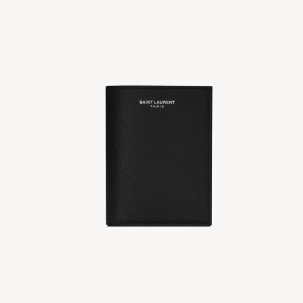 싱글 폴드 지갑. 양각으로 새겨진 SAINT LAURENT PARIS 문구.