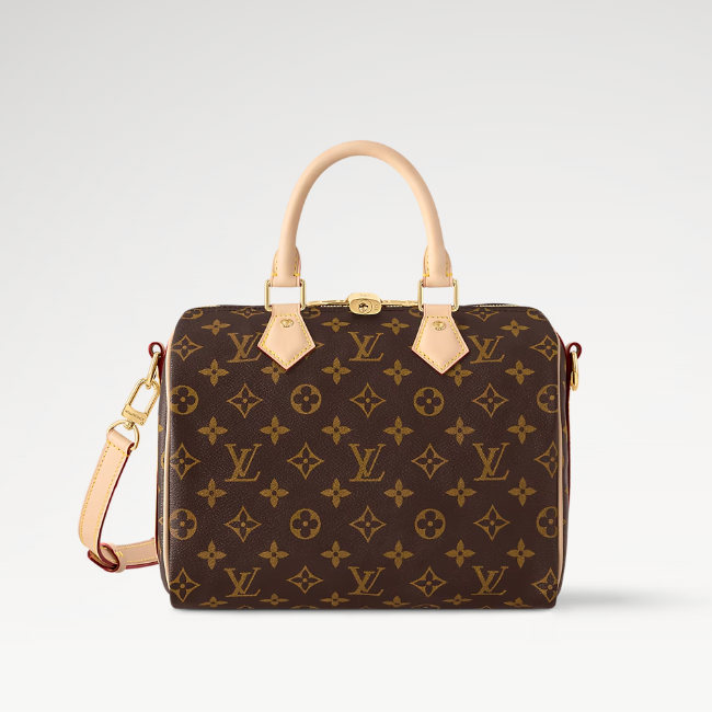데일리 시티 백으로 이상적인 시그니처 모노그램 캔버스 소재의 스피디 반둘리에 25. 빠르게 발전하던 당시 교통 시스템을 의미하는 이름으로 1930년대에 여행자를 위해 처음 선보인 아이템. 깔끔한 실루엣부터 둥글게 말아 완성한 가죽 핸들, 각인 디테일을 더한 패드락, 탈착형 스트랩까지 스피디 디자인 특유의 아이코닉한 특징을 모두 담아낸 스타일.
