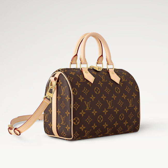 데일리 시티 백으로 이상적인 시그니처 모노그램 캔버스 소재의 스피디 반둘리에 25. 빠르게 발전하던 당시 교통 시스템을 의미하는 이름으로 1930년대에 여행자를 위해 처음 선보인 아이템. 깔끔한 실루엣부터 둥글게 말아 완성한 가죽 핸들, 각인 디테일을 더한 패드락, 탈착형 스트랩까지 스피디 디자인 특유의 아이코닉한 특징을 모두 담아낸 스타일.